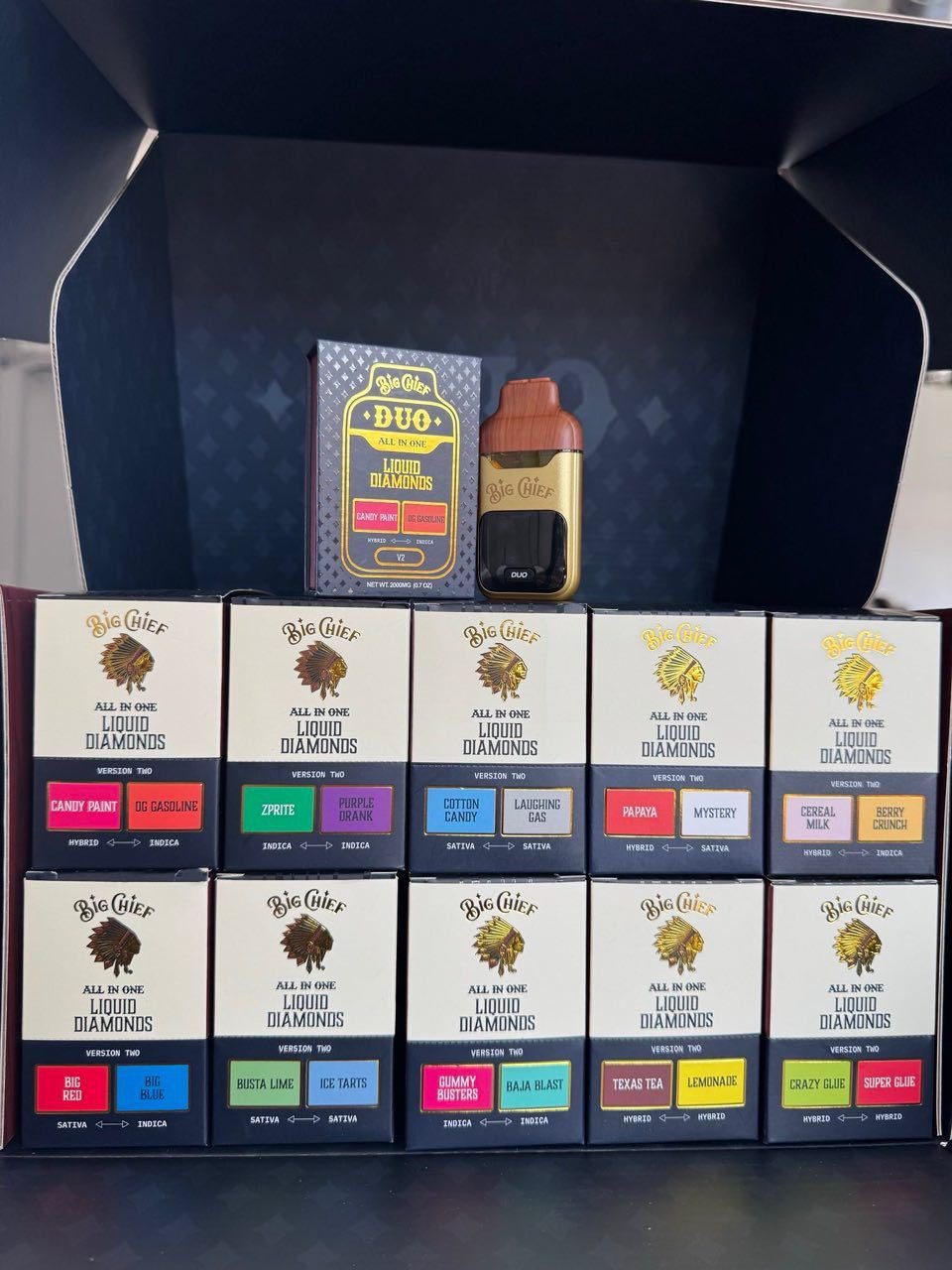 The BIG CHIEF DUO Liquid Diamonds Disposable Vape is a high-end all-in-one gadget containing 2 grams (2000mg) of very strong concentration. It’s easy to use and lasts a long time. You can charge it and throw it away, so you get the best of both worlds.